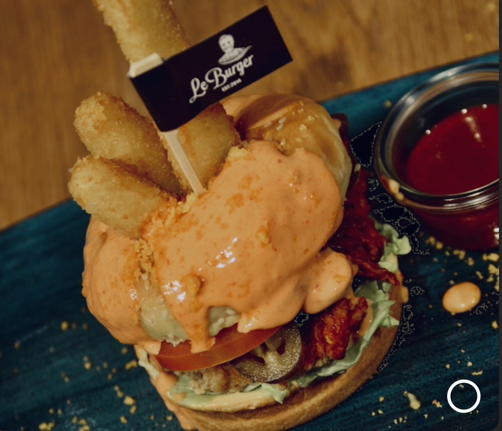 Sesame Brioche Bun, 2pcs 60g Small Smashed Beef Patty, Savory Cheddar, Fried Onion, Iceberg Lettuce, Tomato, BBQ Truffle Mayo. Allergens: Egg, Dairy, Gluten, Sesame